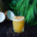 The "Living Dangerously" cocktail by Joe Mele is made with Charred Pineapple-infused Ilegal Mezcal Oaxacan Coffee-infused Agave, Pressed Coconut Water, Pineapple Juice & Fresh Lime Juice garnished with Oaxaca Coffee dust blended with Demerara Sugar. This cocktail was inspired by recent trips to Oaxaca, Mexico and beachside cocktails in Puerto Escondido. The coffee beans are sourced by Cyrus Chai and Coffee Company from Oaxaca, Mexico. These beans are grown near cocoa fields where the soil imparts powerful flavors and aromas of rich dark chocolate.